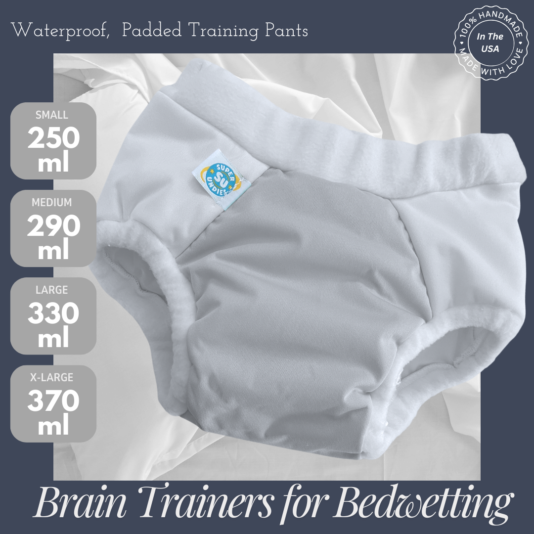 - Brain Training Bedwetting Pants are made to order it the USA, in the colors of your choosing.