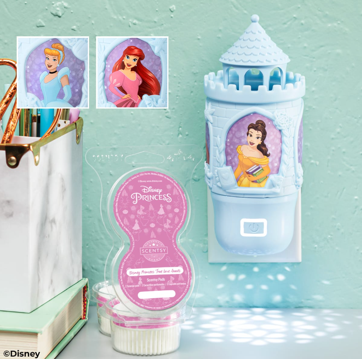 Let your space feel like a fairytale with the Disney Princess Scentsy Wall Fan Diffuser – Blue with Light, featuring Belle, Cinderella, and Ariel in a dreamy pastel design. Plug it in, pop in your favorite Scentsy Pods, and enjoy instant fragrance without heat or mess — plus a soft glow that feels like a little nighttime magic.