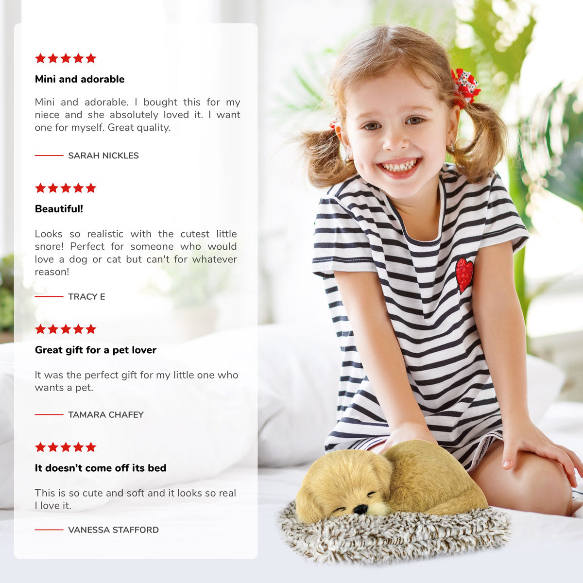 Our Mini Golden Retriever is pure sweetness — loyal, well-mannered, and always ready for a snuggle. With soft golden fur and the cutest sleepy snore, this tiny pup is here to bring comfort, calm, and a little joy to any space.