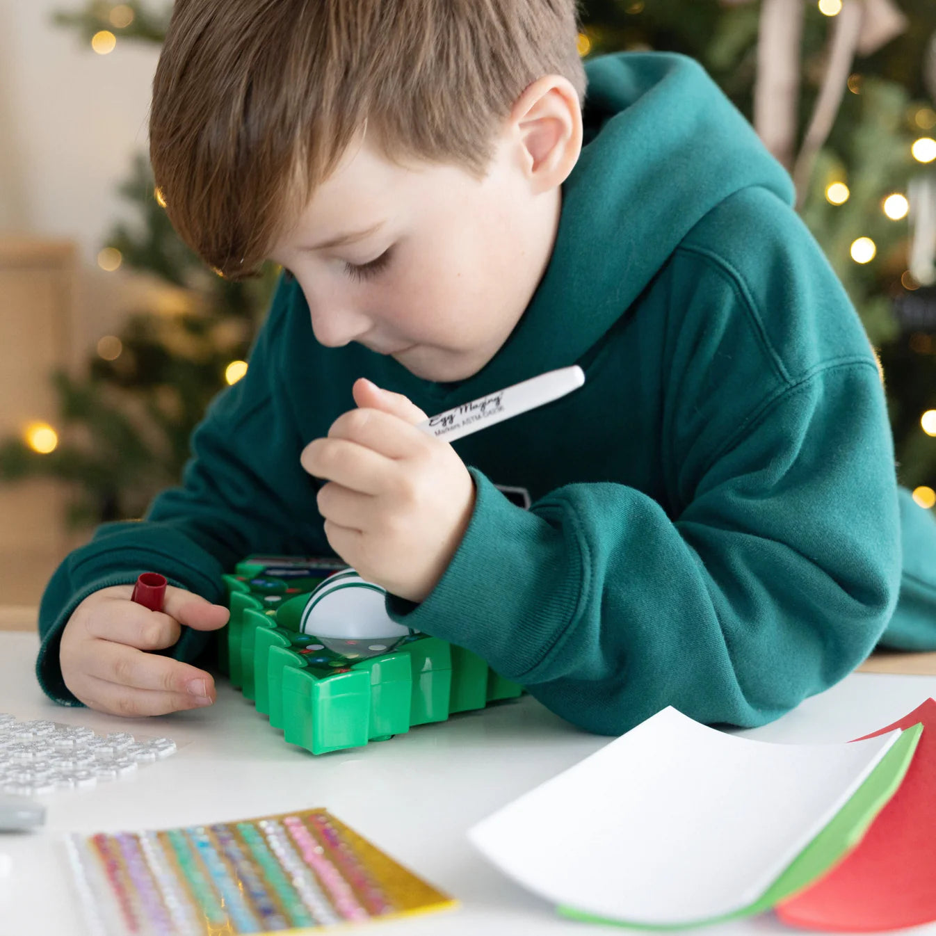 Take your ornament decorating to the next level with the Treemendous Ornament Accessory Pack! This festive kit is packed with holiday-inspired markers, sparkling embellishments, and colorful letters—everything you need to create personalized ornaments that truly shine.