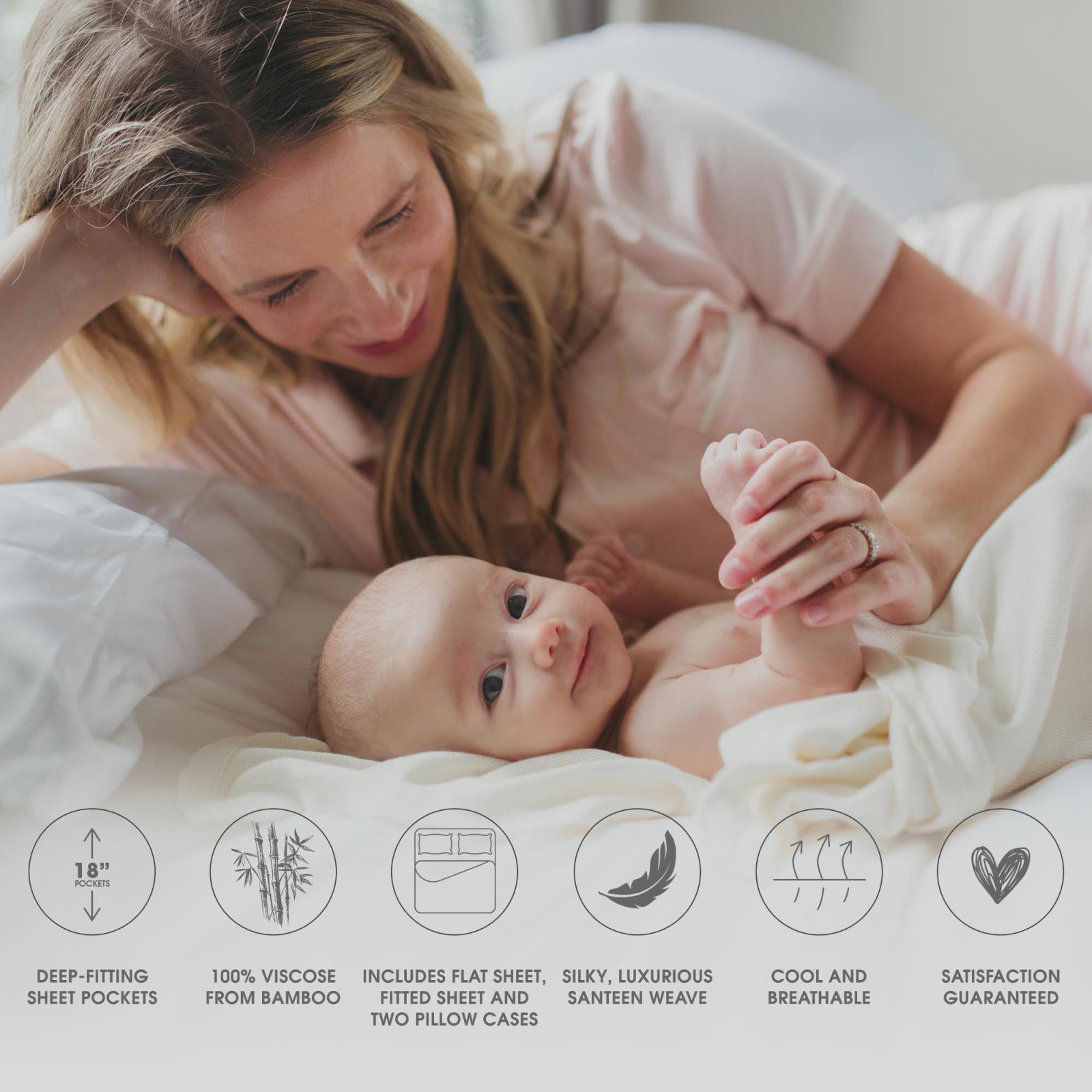 Sweaty sheets no more! Quality meets comfort with our wrinkle-free, lightweight and breathable bed sheets Crafted from our incredible soft and cooling Bamboo Sateen Weave fabric. For a heavenly night of sleep, pair with our soft as silk duvet cover and happily drift into dreamland!