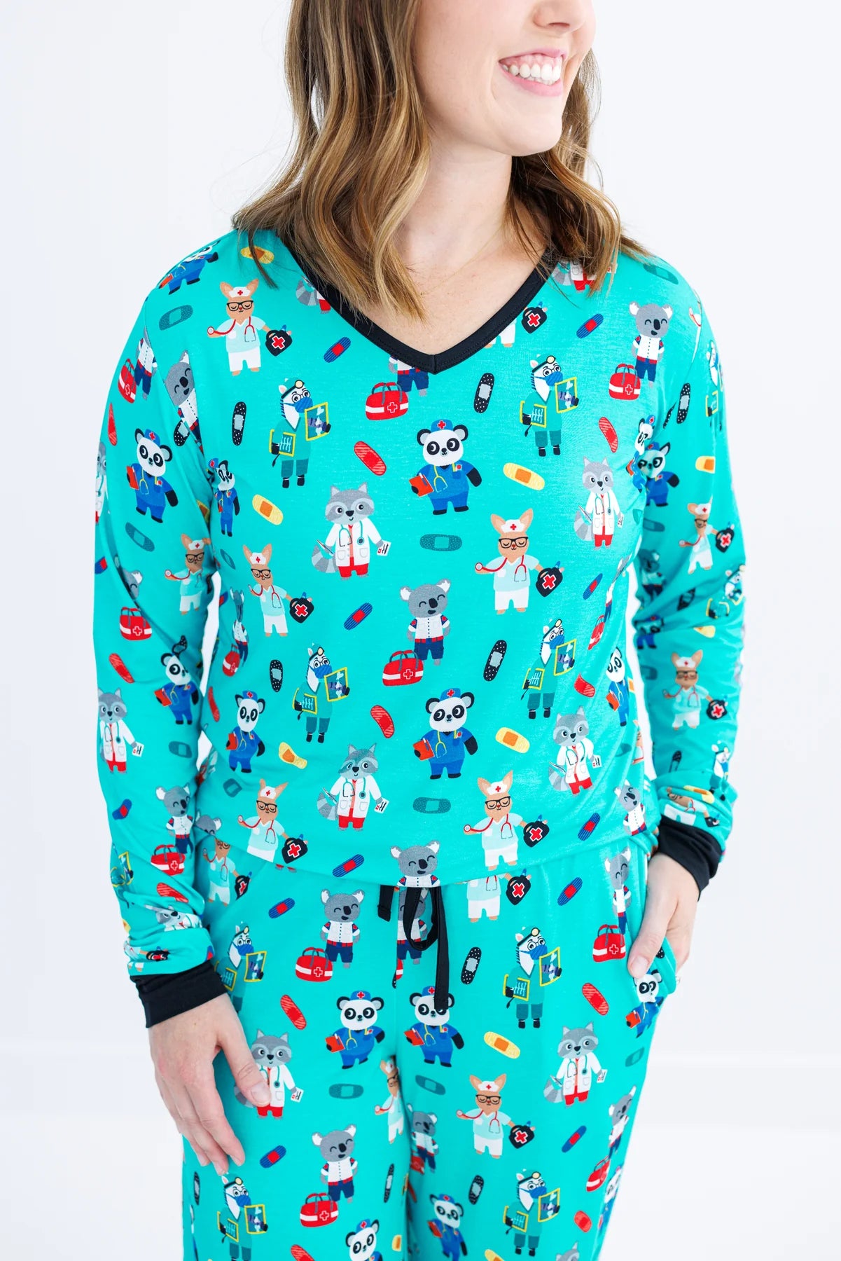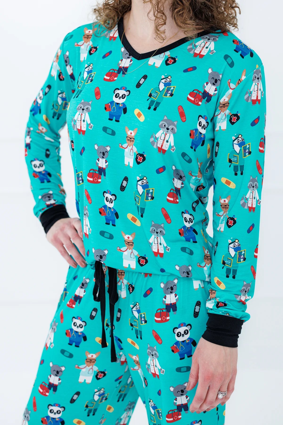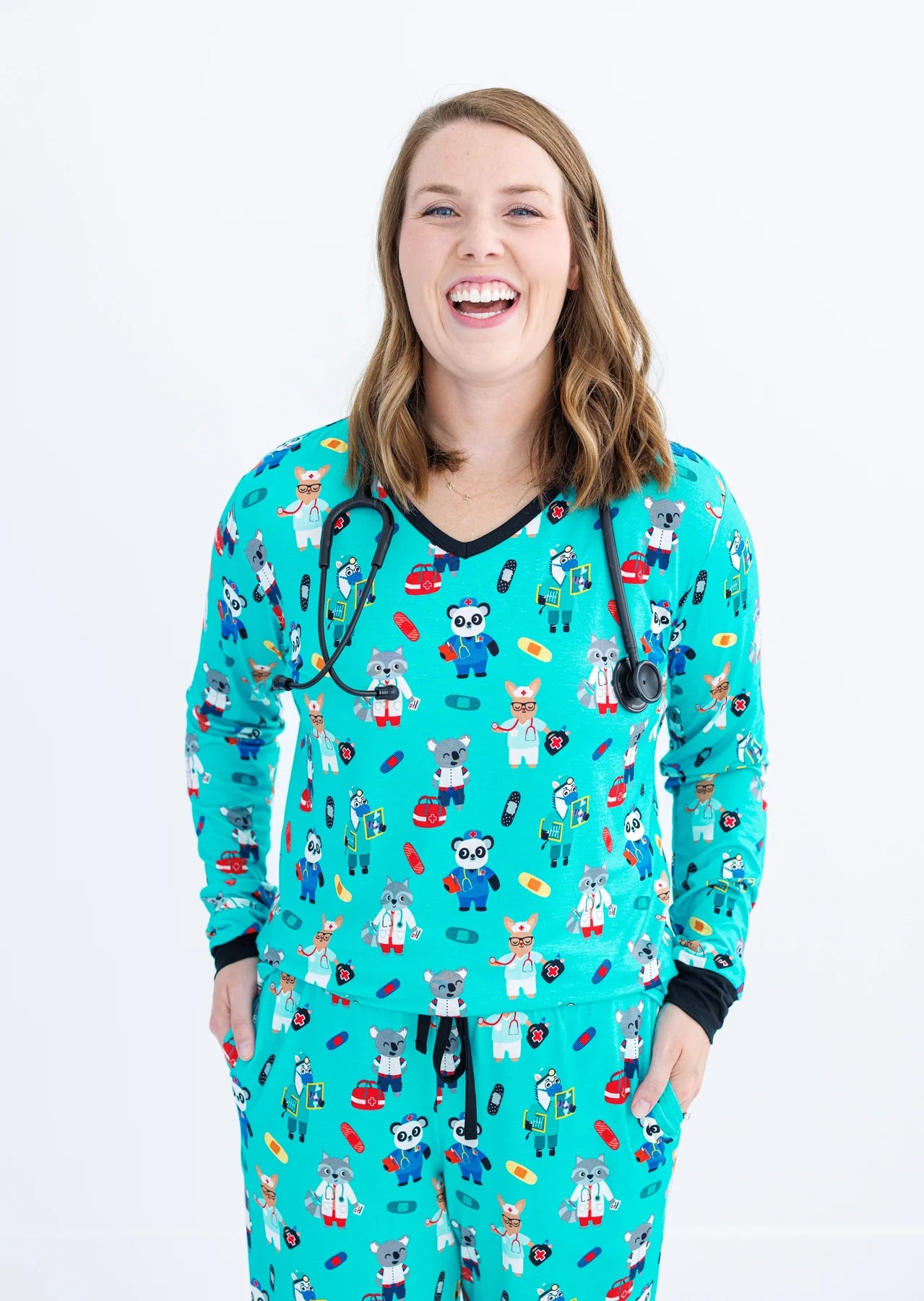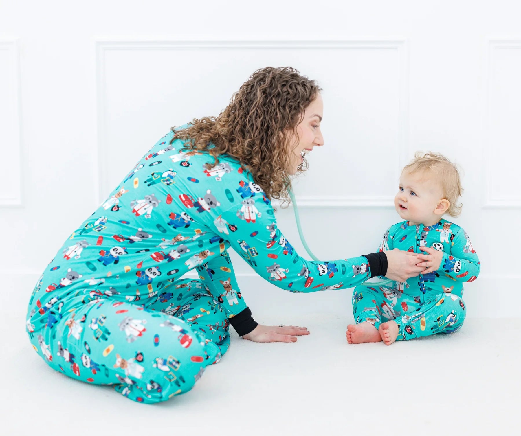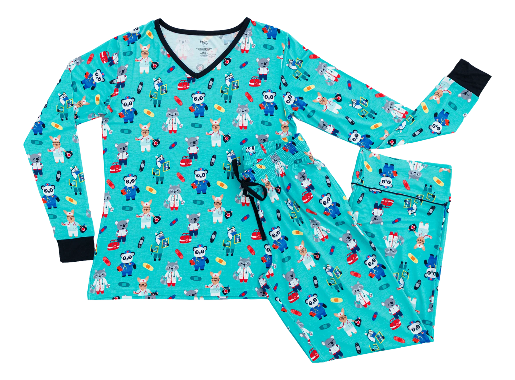 The Doc Lounge Set is everything you want in off-duty wear — soft, breathable, and effortlessly cute. Crafted from buttery bamboo viscose with just the right amount of stretch, this matching top and pants combo feels like a dream against the skin (especially if you’ve got sensitive skin or sensory needs).