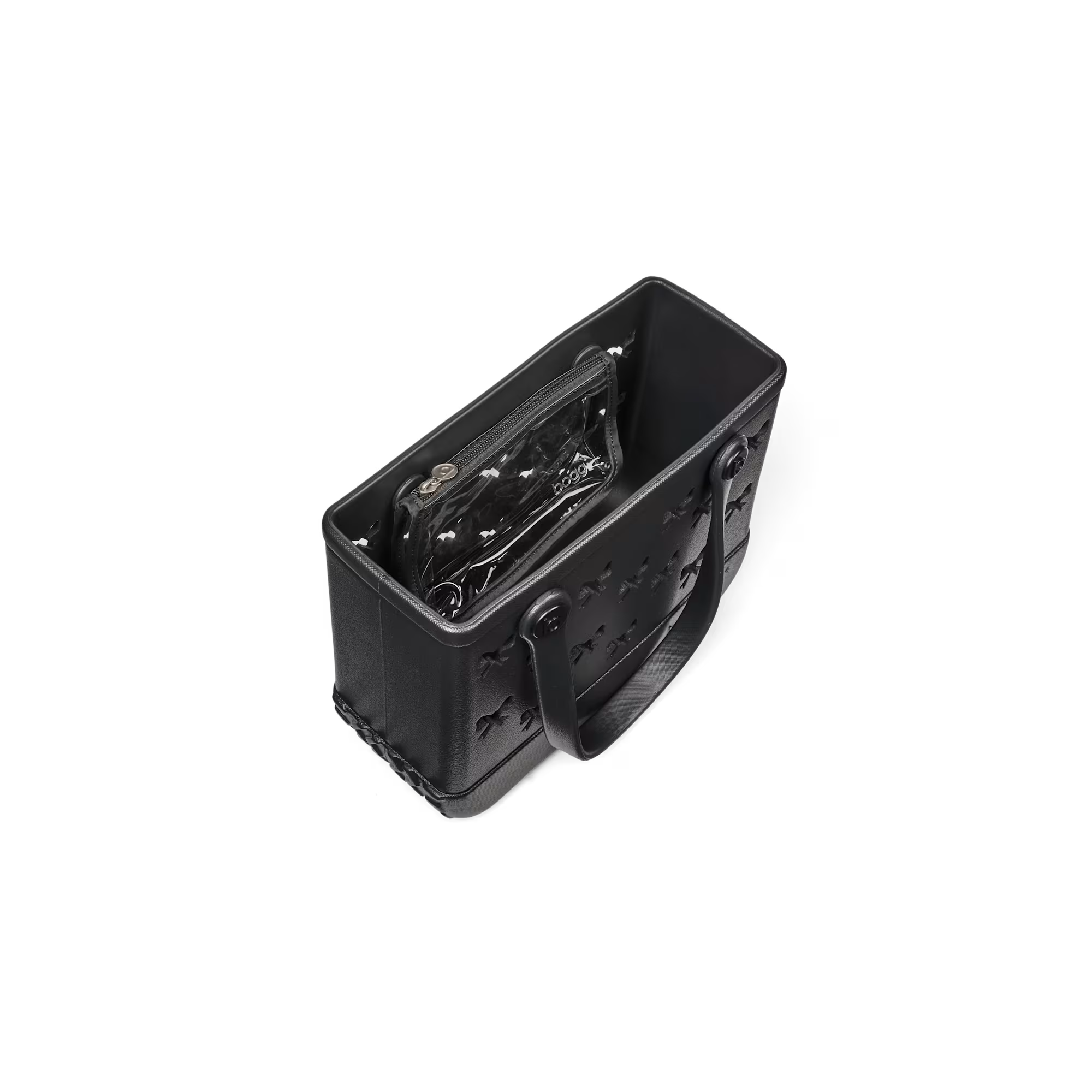 Includes a small clear pouch for storing little essentials like keys, lip balm, or hand sanitizer.