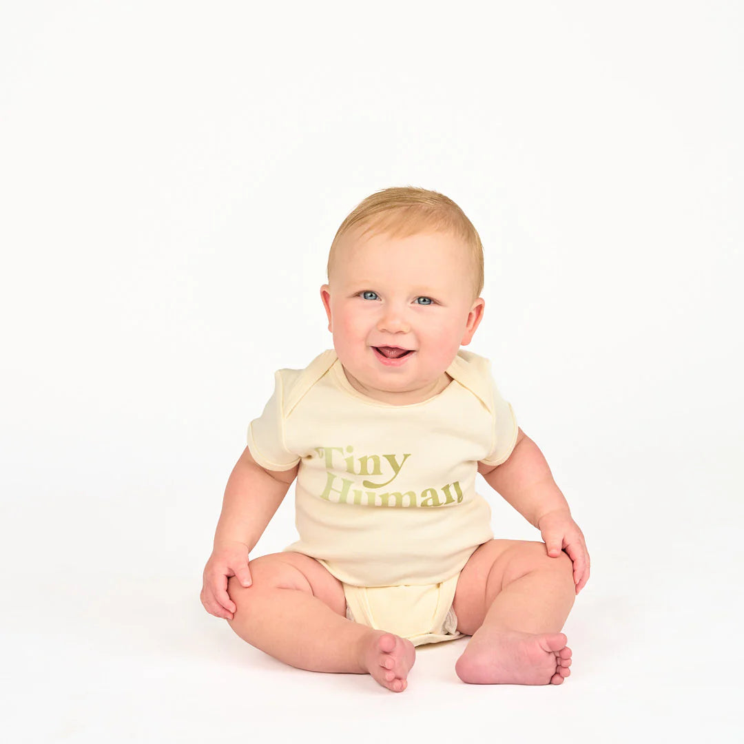 Our "Tiny Human" Print Baby Onesie is the perfect everyday essential — soft, stretchy, and stylish enough for playdates, naps, and everything in between.