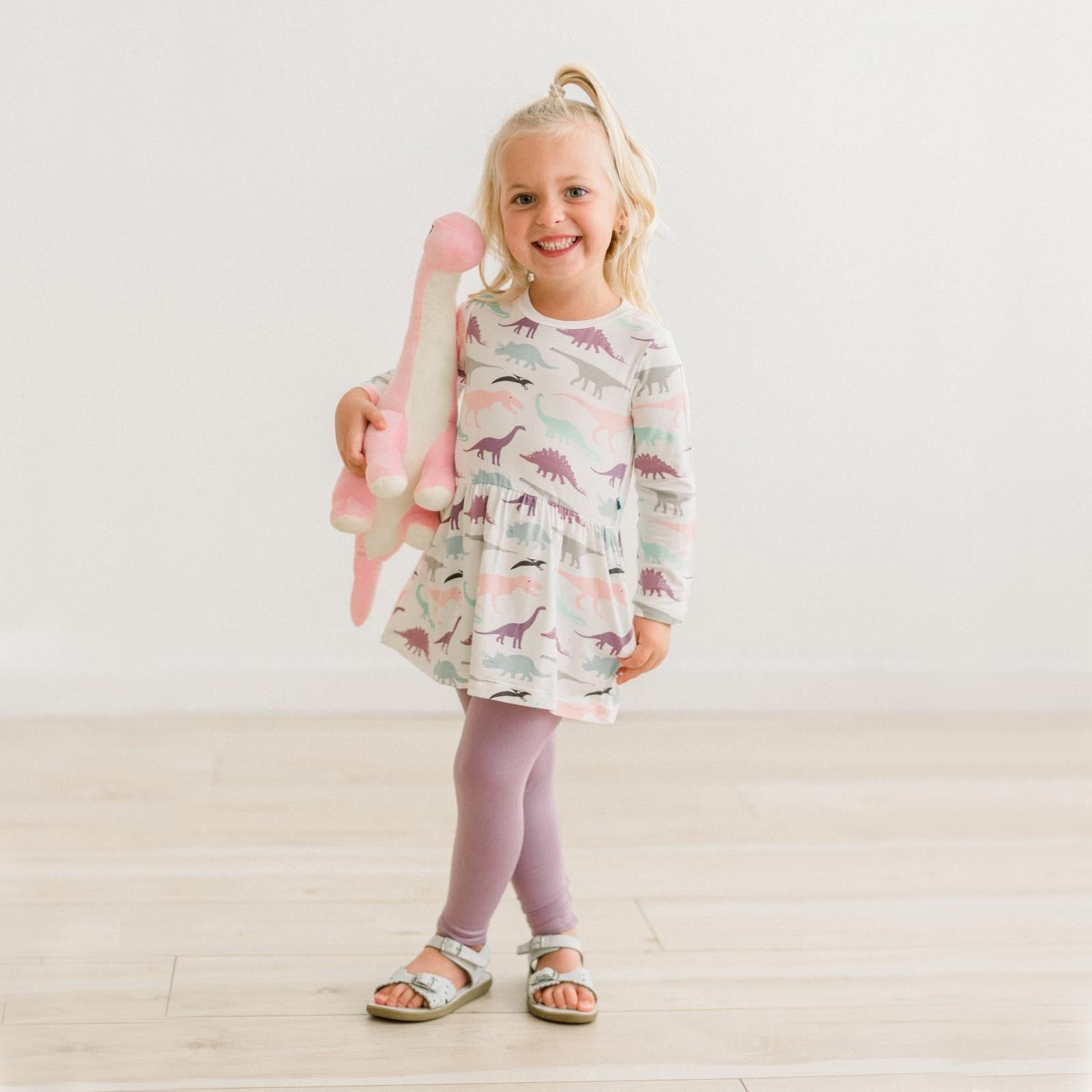 Long Sleeve Playtime Outfit Set in Lavender Dino Museum