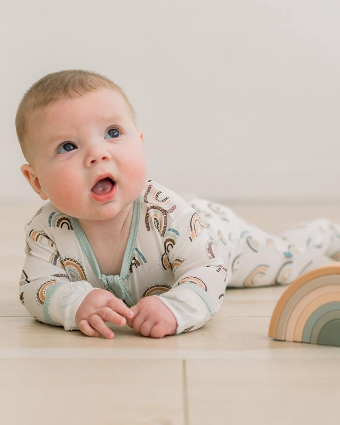 What's a better feeling than zipping your tiny peanut into an adorably snug sleeper? Getting to warm their little fingers and toes with flip paws and footies, that's what! They'll love this coverall for its comfort, and you'll love this coverall for its cuteness and its torso length zipper which makes changes a breeze. Flip into fun with KicKee!
