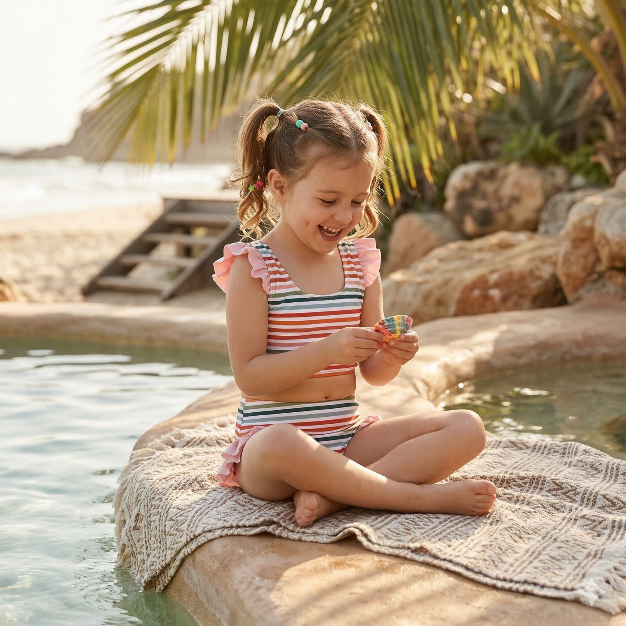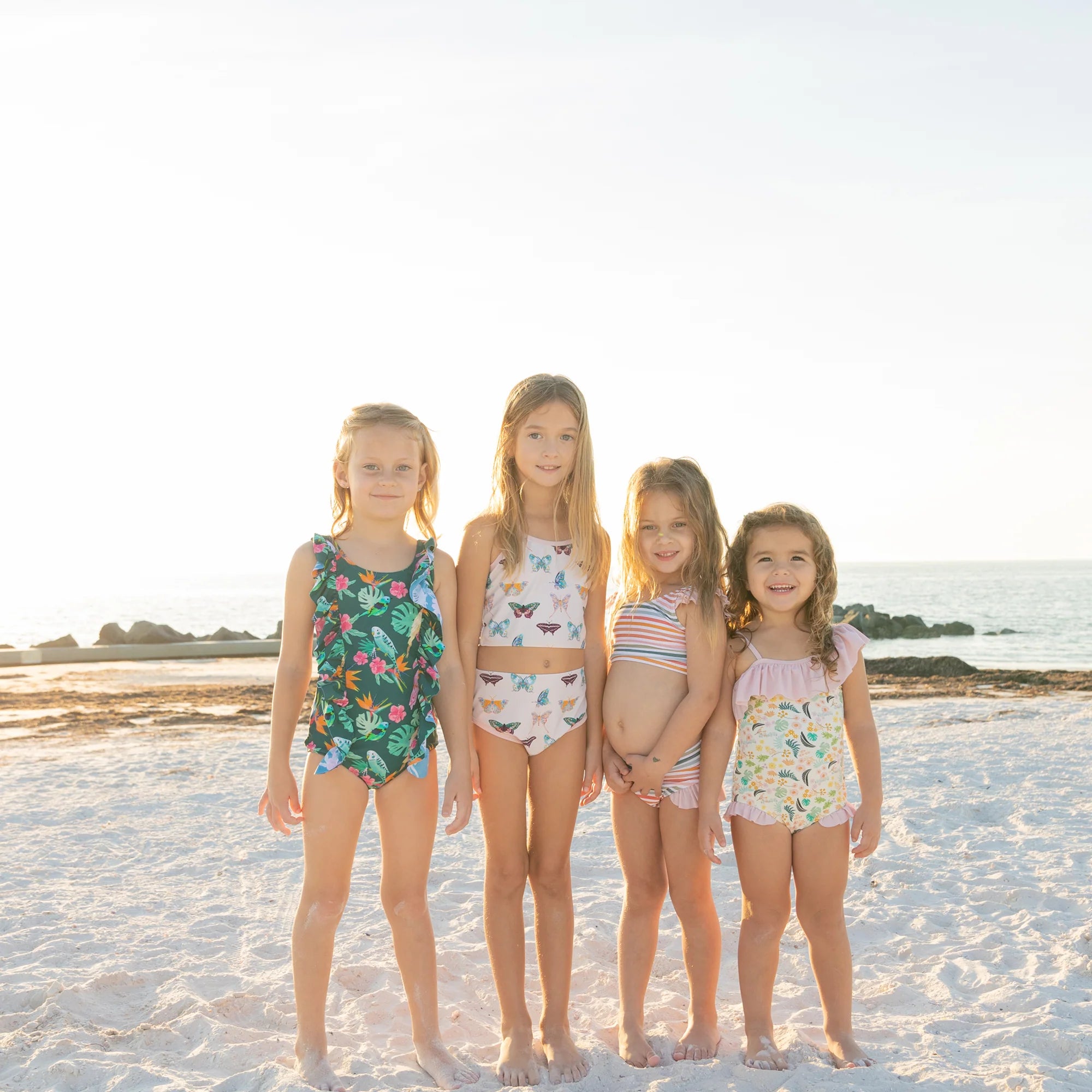 From building sandcastles to chasing waves, the Sunset Stripes Flutter Bikini is a must-have girls summer swimsuit that blends comfort, sun protection, and adorable boutique style for endless summer fun. 🌞🏖️👙