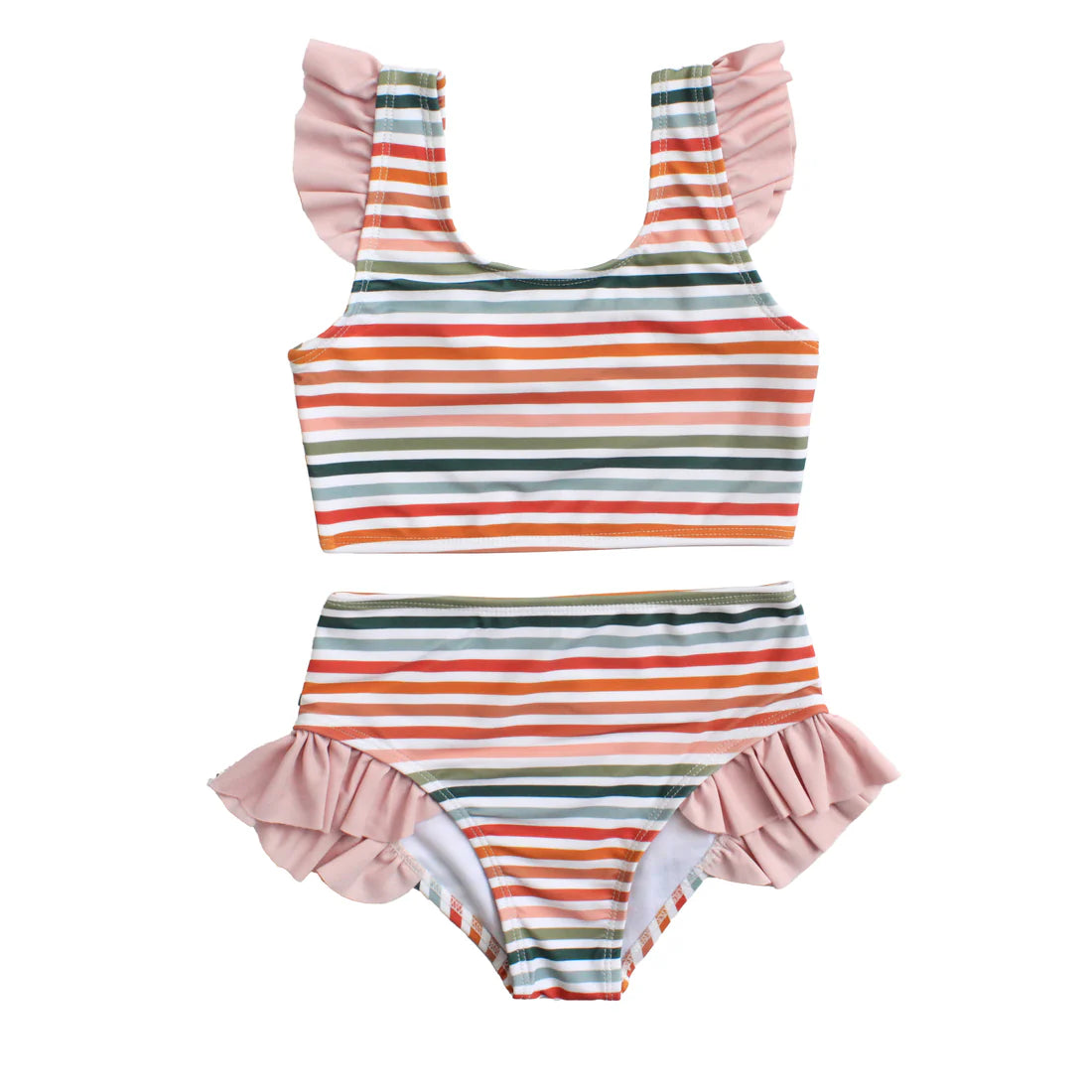Sunset Stripes Flutter Bikini – Girls Two-Piece Swimsuit