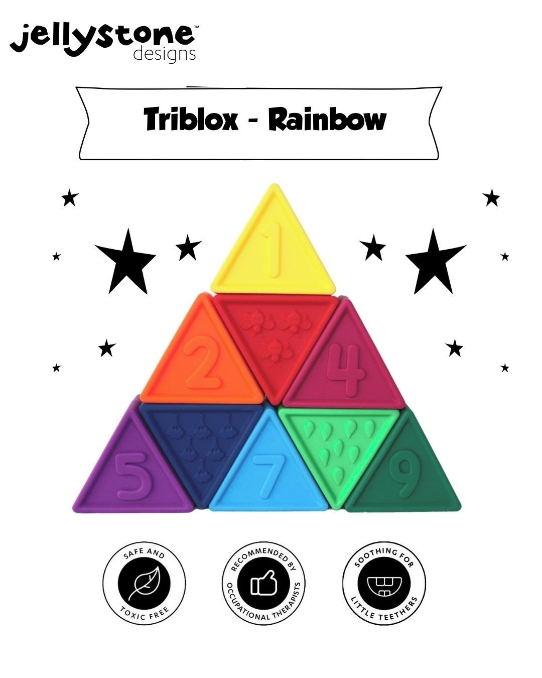 Crafted from non-toxic, food-grade silicone, Triblox encourages open-ended play while supporting early learning. Each colorful triangle is numbered 1–9, with a textured illustration on the reverse to introduce counting, matching, and visual exploration in a fun, hands-on way. No rules, no right or wrong — just creativity-led play at its best.