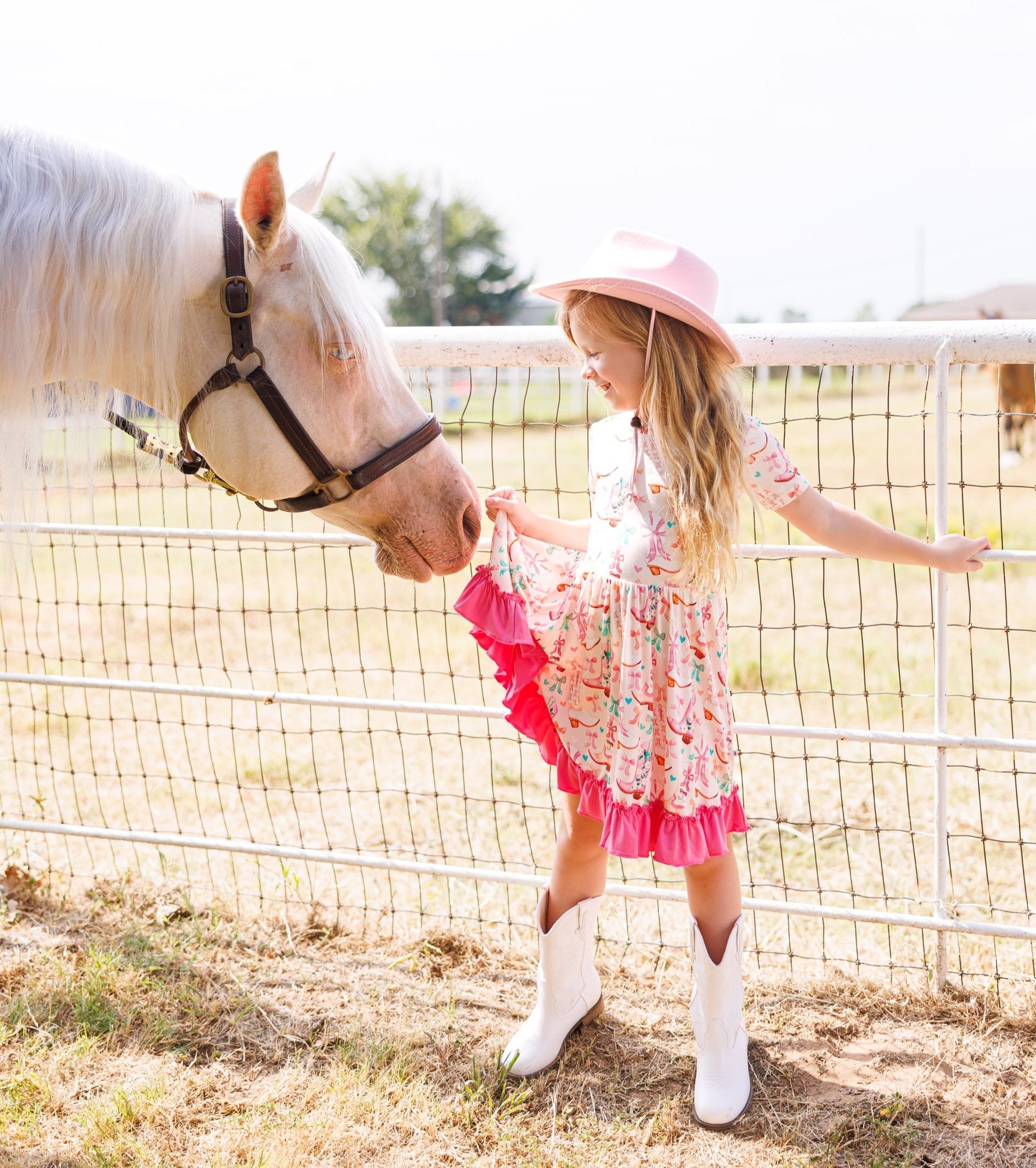Yeehaw with a twist of sweetness. This cowgirl boot twirl dress set is ready for every little rodeo and playdate adventure! Covered in whimsical boots, bows, and hearts, it brings western charm with a girly flair. The layered ruffle hem gives it extra twirl power, while the matching shorts keep little ones covered and comfy for all-day play. Crafted in our signature bamboo blend, it’s buttery-soft, stretchy, and breathable. Perfect for everything from the classroom to the county fair.