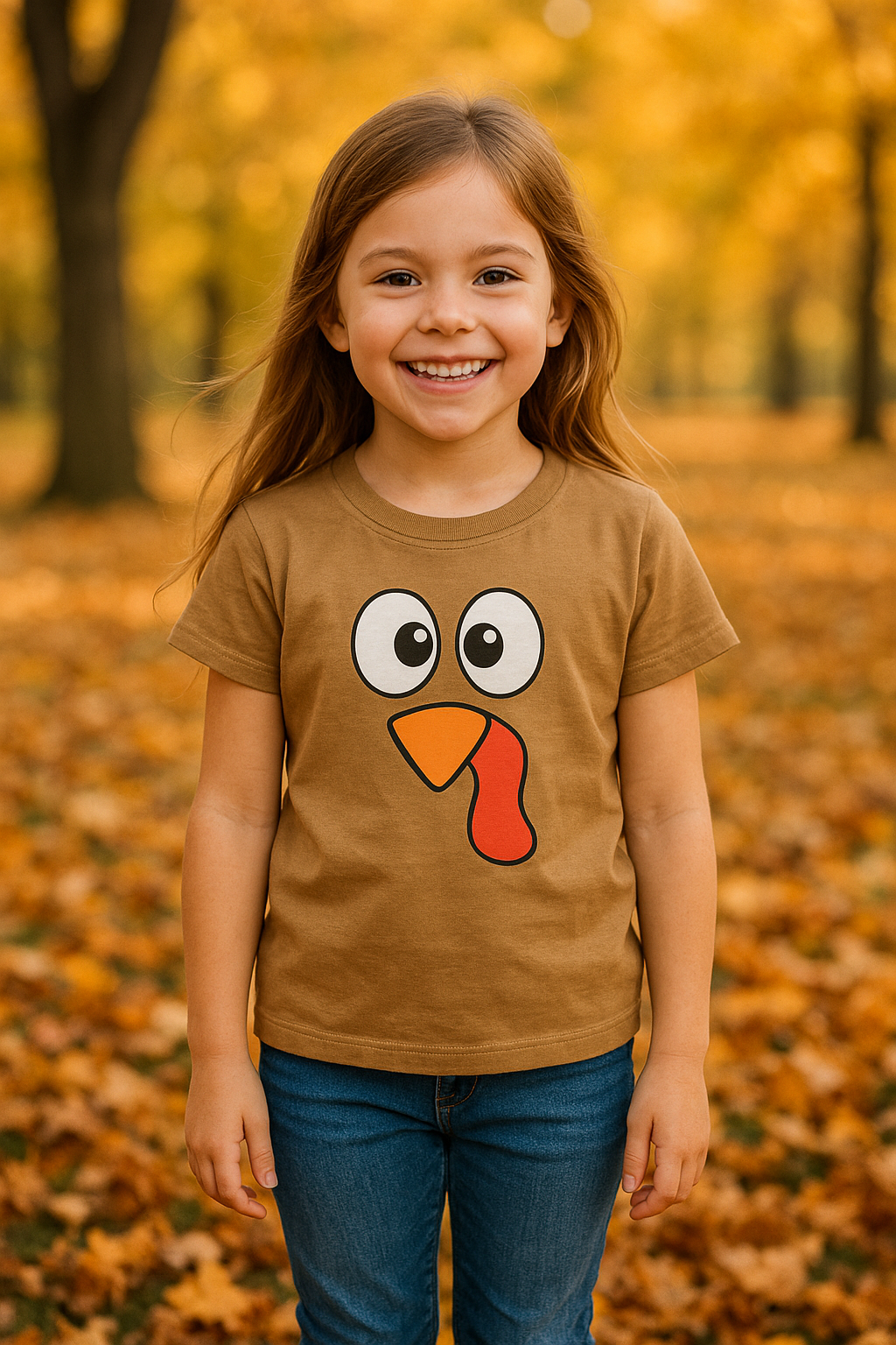 Get ready for the cutest Thanksgiving look! This playful turkey tee brings all the holiday fun with its big googly eyes and bright gobbler graphic that kids love. Soft, comfy, and easy to layer — it’s perfect for school feasts, family dinners, festivals, or snapping those adorable holiday photos.