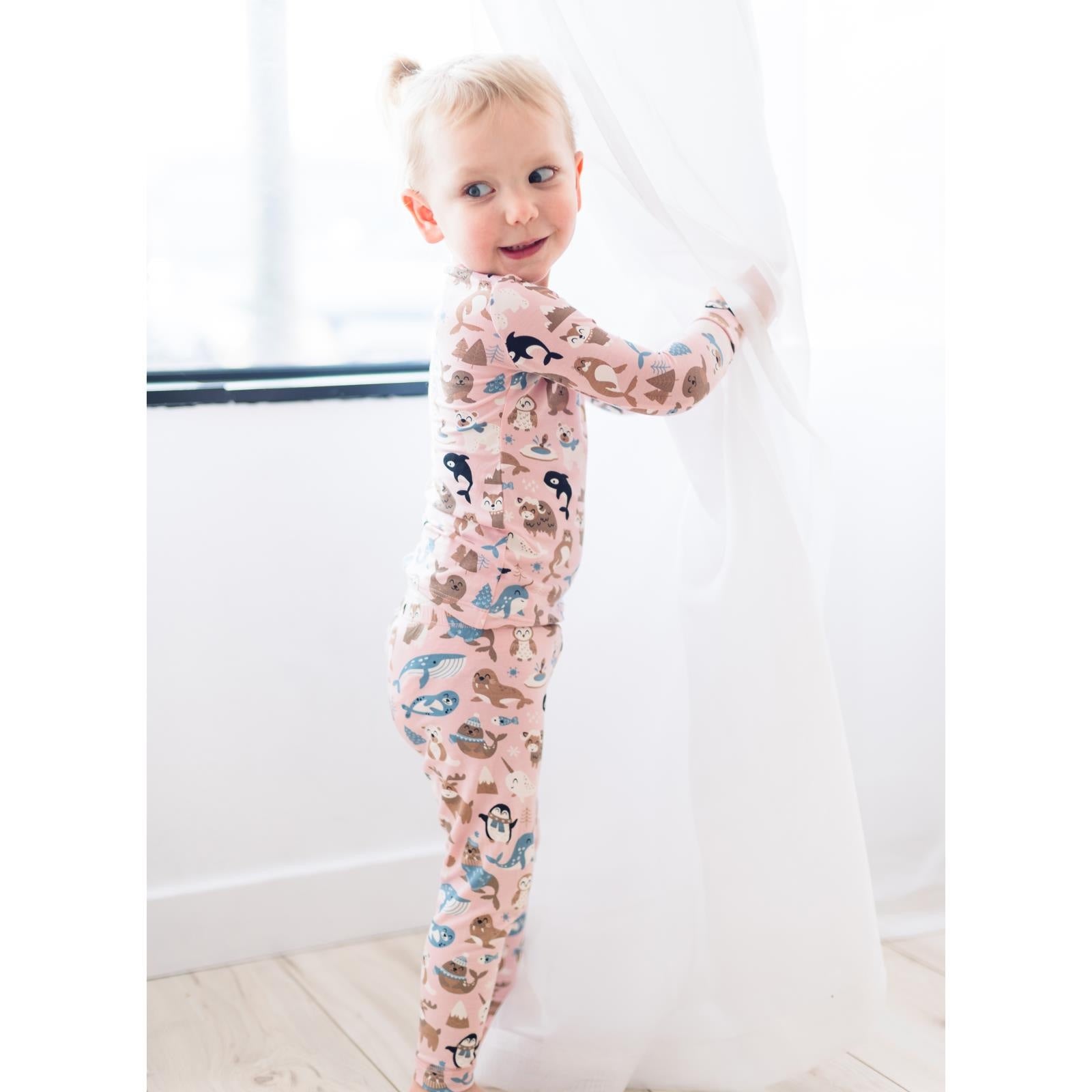 Long Sleeve Pajama Set in Baby Rose Arctic Animals