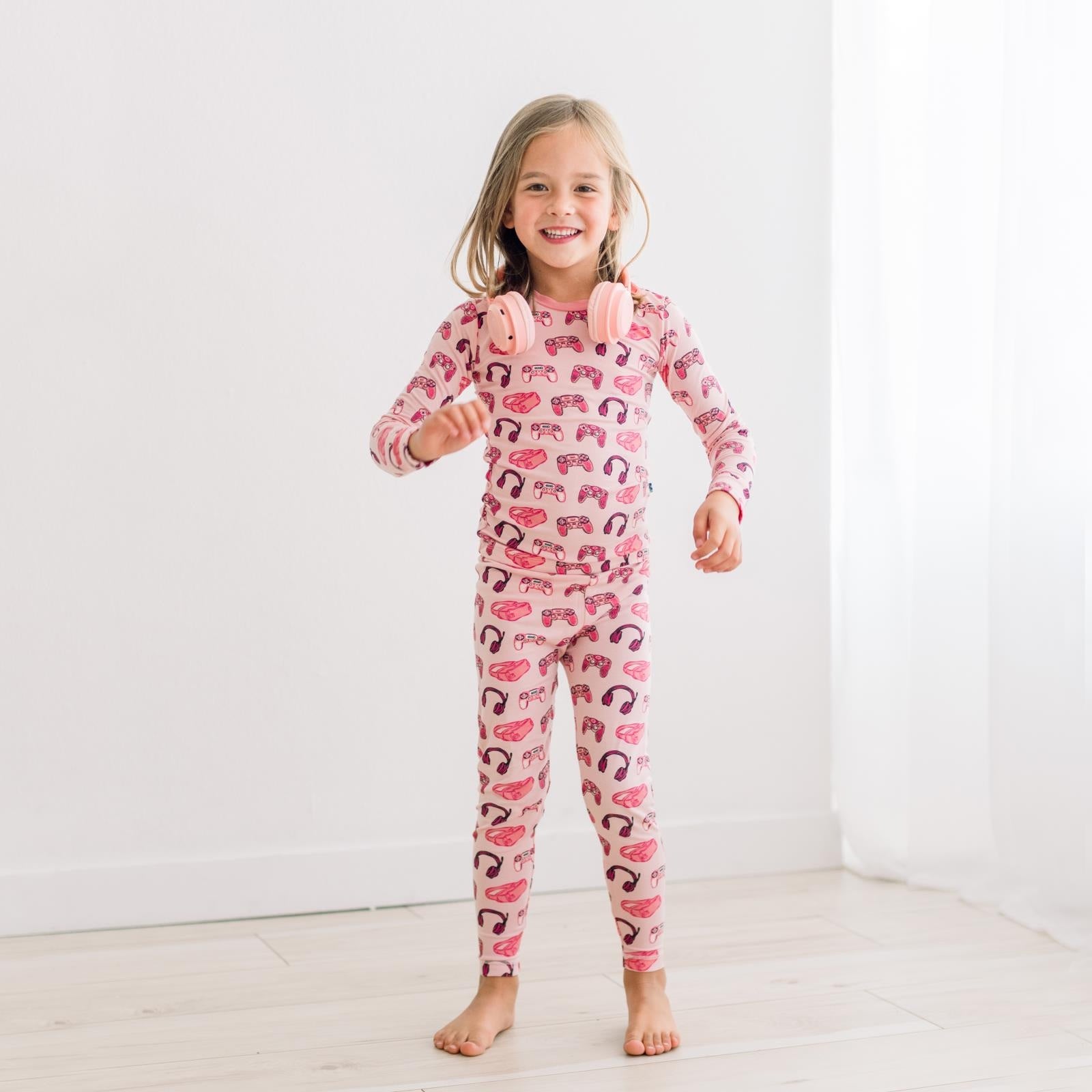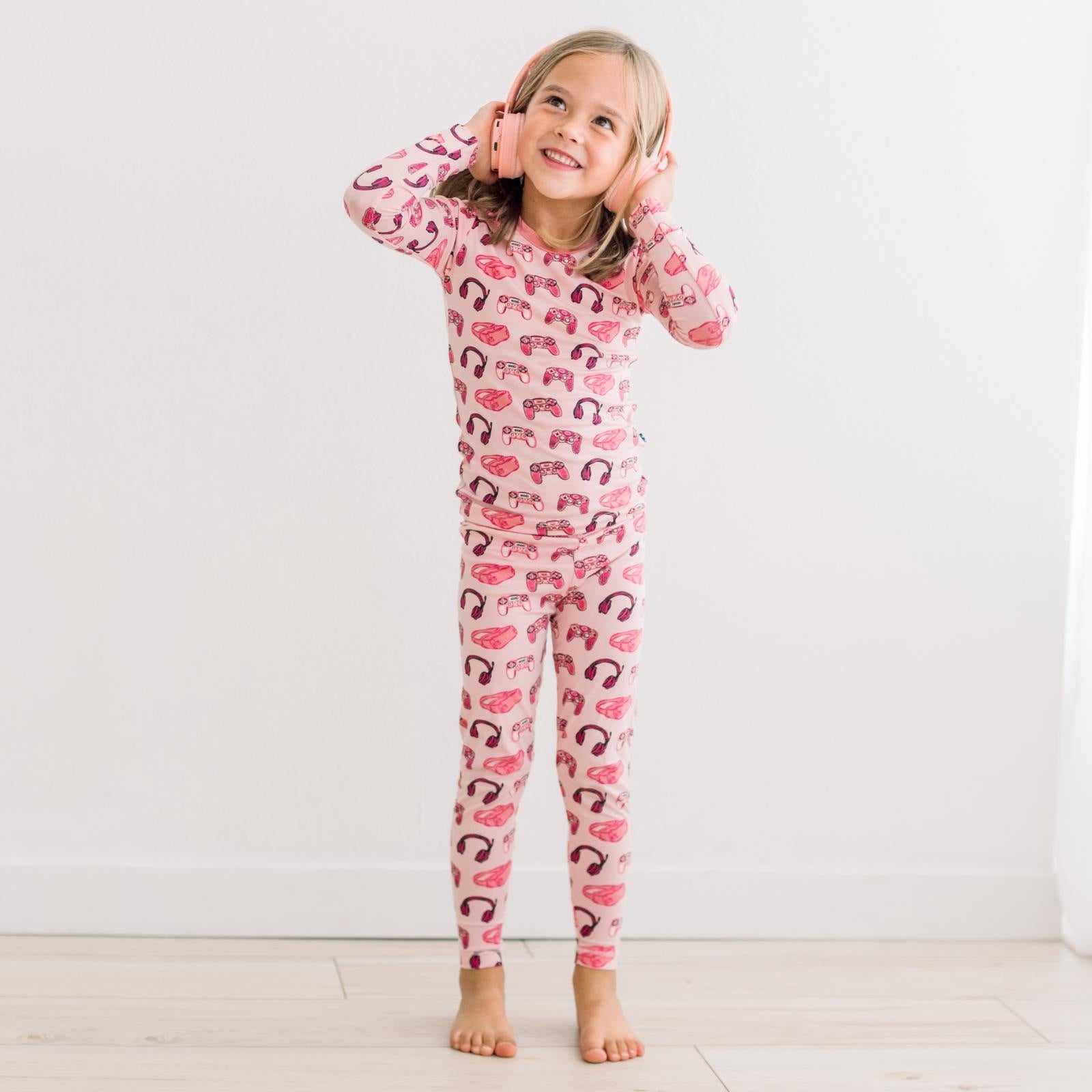 Long Sleeve Pajama Set in Baby Rose Gamer