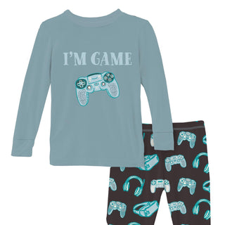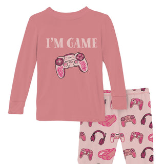 Long Sleeve Graphic Tee Pajama Set in Baby Rose Gamer