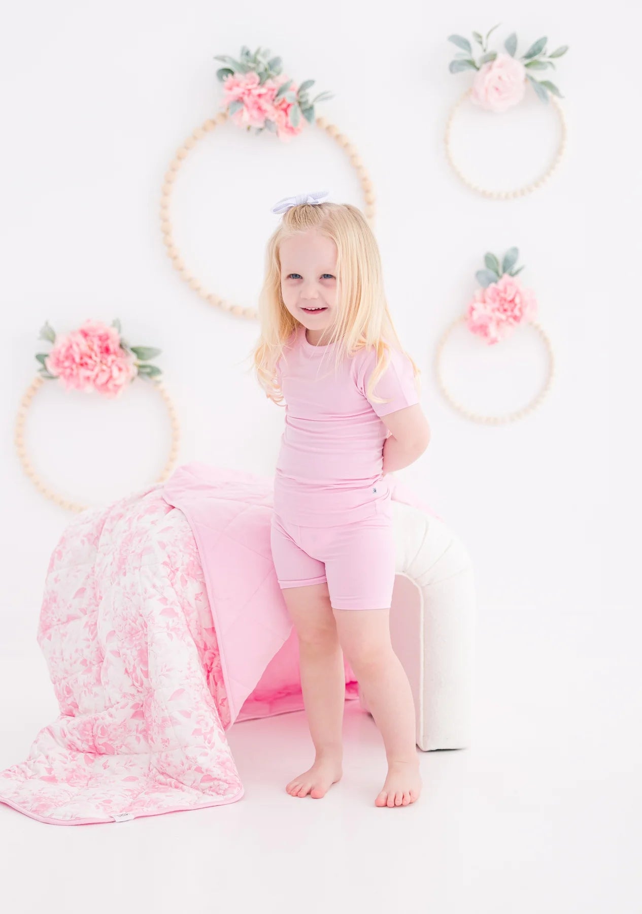 Dreamy comfort meets timeless charm with the Blush 2-Piece Pajama Set — a sleepwear essential your little one will love night after night. Crafted from luxuriously soft bamboo viscose and a hint of spandex, these pajamas offer a snug, stretchy fit that feels buttery-smooth against sensitive skin. The breathable fabric keeps your child cool, cozy, and comfortable through every sweet dream.