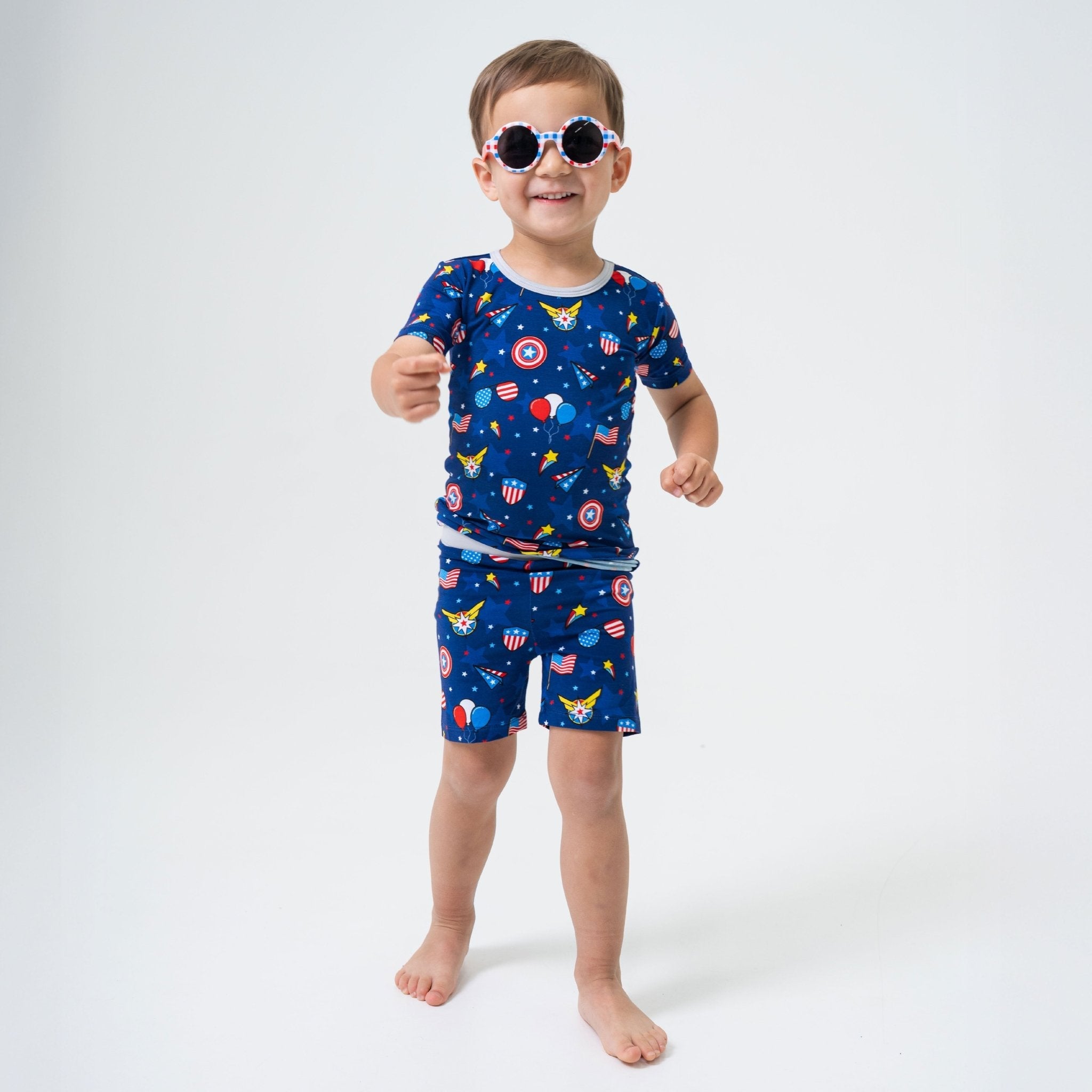 Our Freedom Flyers short sleeve pajamas are perfect for little dreamers with big imaginations. Featuring bold stars, stripes, and American flags, these PJs blend patriotic style with unmatched comfort.