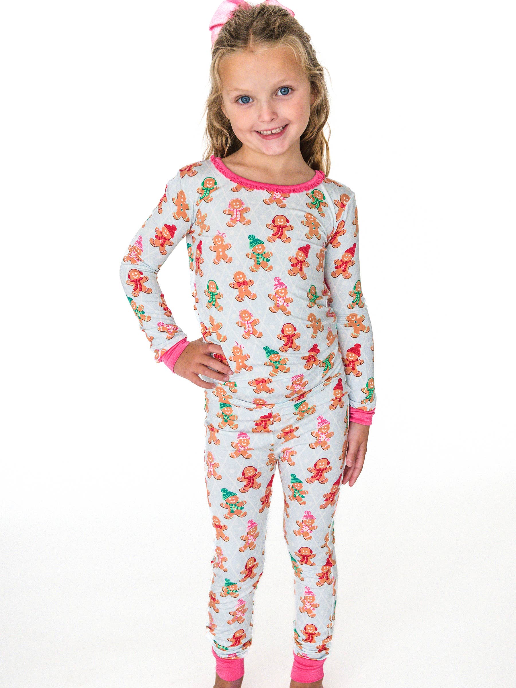 Make bedtime extra sweet with our Gingerbread Buddies Long Sleeve Sleep Set—a soft, cozy pajama set with the perfect touch of girly charm. A dainty ruffle along the neckline adds a sweet detail little ones adore, while the tagless design ensures itch-free comfort all night long.