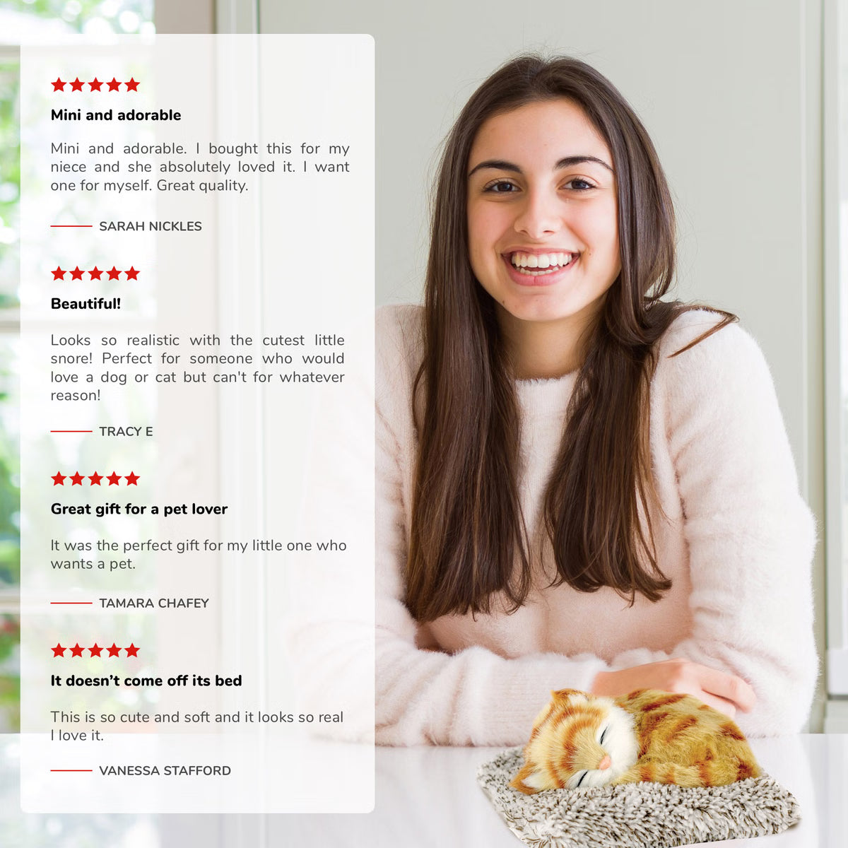 With its soft fur, gentle snore, and curled-up pose, this kitten brings the calm — no litter box required.