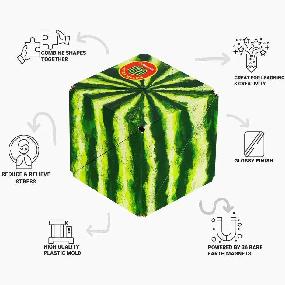Shashibo cubes are crafted with magnetic technology, allowing them to easily snap into different shapes. The cubes feature vibrant designs and patterns, adding an artistic touch to the interactive experience. The magnetic construction ensures durability and ease of manipulation.