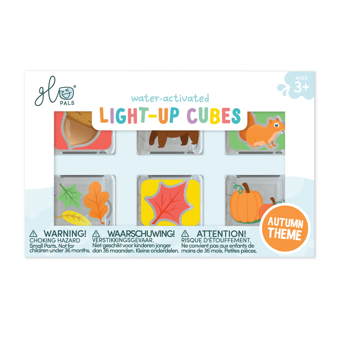 Bring the cozy magic of autumn to playtime with the Limited Edition Fall Glo Pals Light-Up Cubes! Featuring adorable seasonal designs—pumpkins, acorns, woodland animals, and colorful fall leaves—these cubes turn any water activity into a glowing autumn adventure.