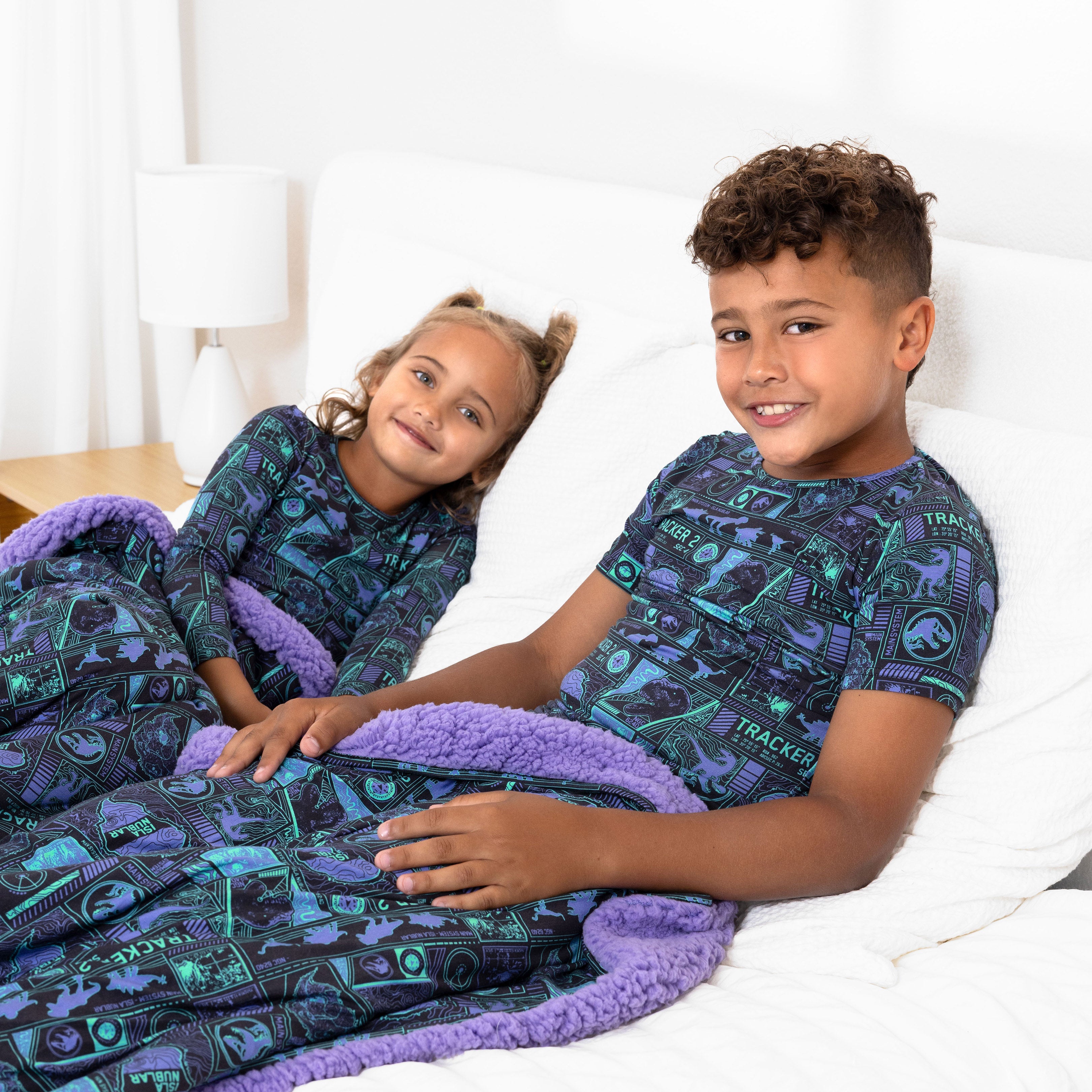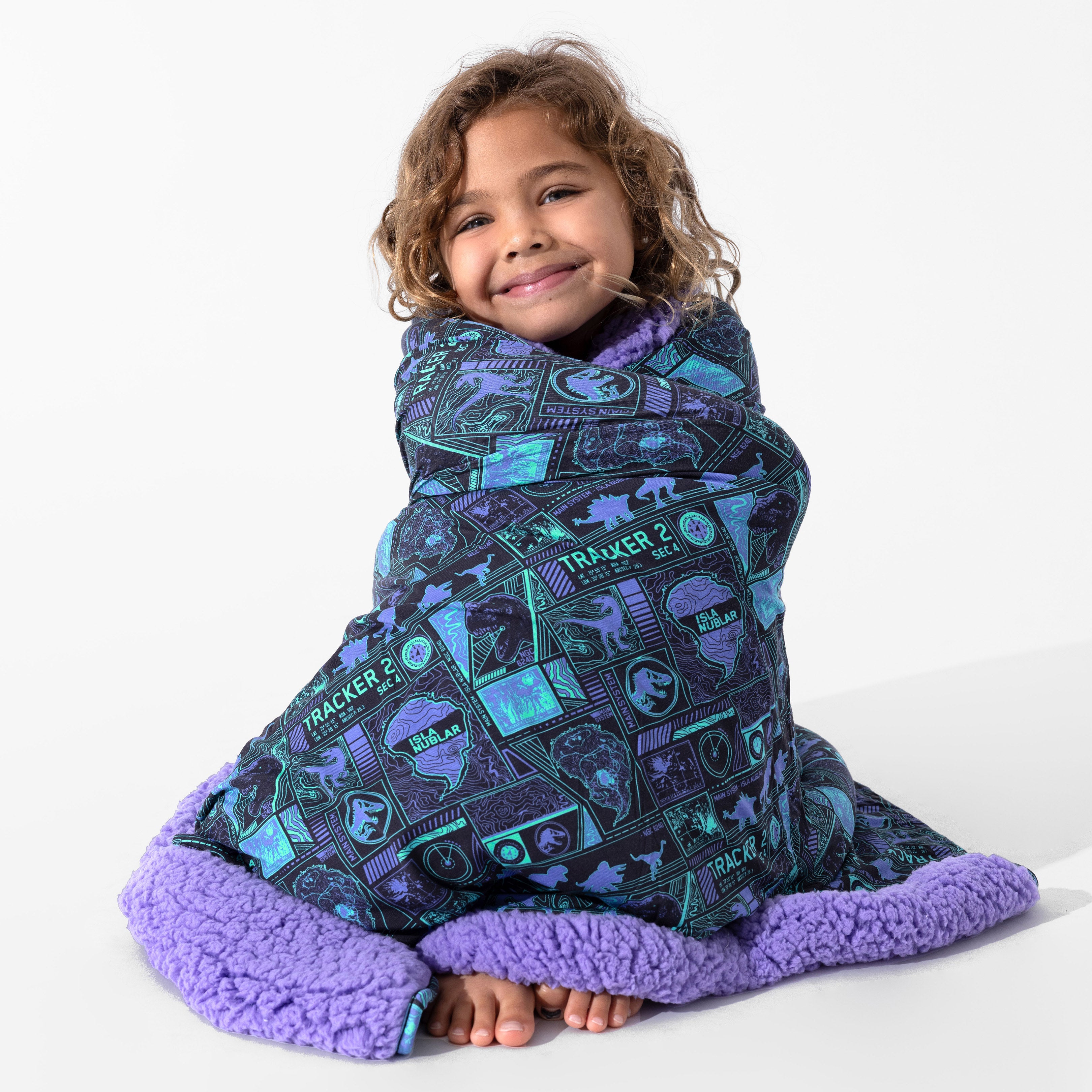 Wrap your little explorer in the ultimate blend of cozy and cool with our Tracker 2 Jurassic Park Bamboo Blanket. Featuring a bold dinosaur-themed print in vibrant purples and blues, this blanket is designed for snuggles, naps, and movie marathons alike.