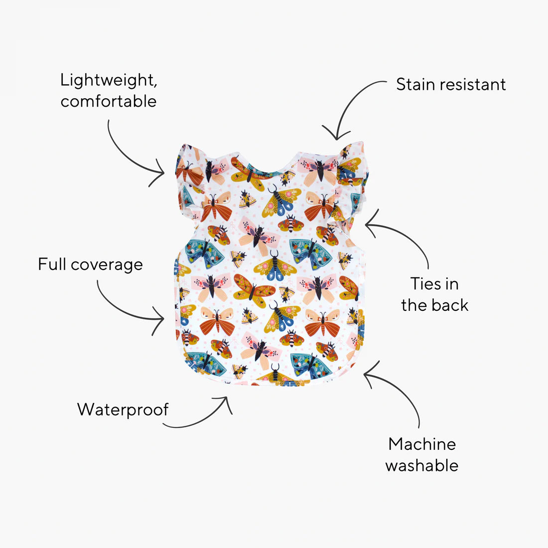 Mealtime, art time, and sensory play just got easier (and cleaner!) with the best-selling Bapron—a bib-apron hybrid designed with kids and parents in mind. Unlike traditional bibs, Baprons feature comfortable horizontal ties that stay secure and out of the way, plus a full-coverage smock-style design that keeps clothes protected from spills, splatters, and stains.