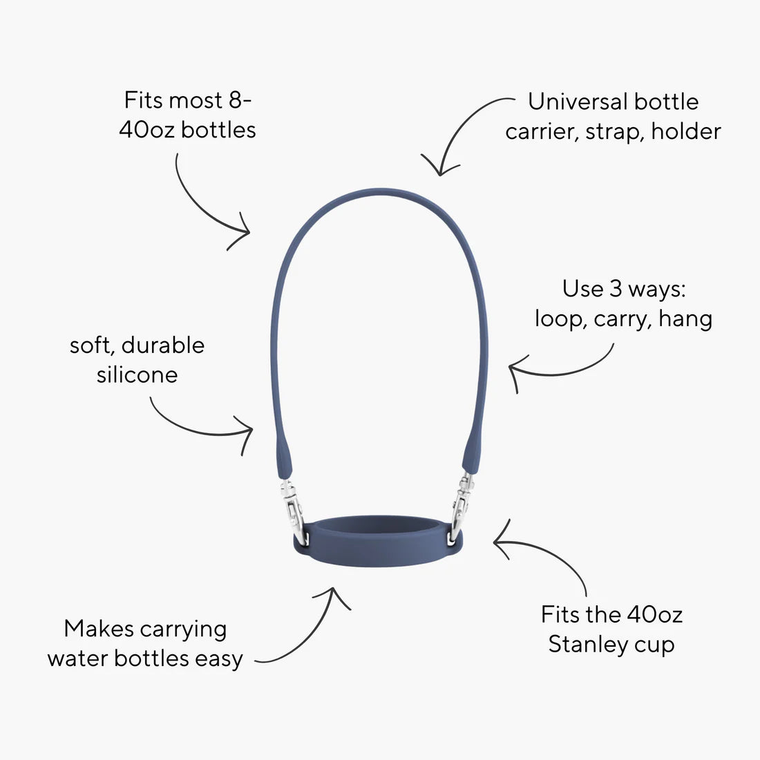 🍼 Directions: Stretch the strap around your chosen bottle and it will snap securely into place. To remove, always pull from the strap itself—never the clasp or handle.