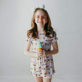 Short Sleeve Lola Swing Dress Thistle Ice Cream Truck