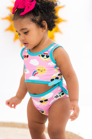 Girls Shimmer Stars & Stripes Flounce Bikini 2-Piece Swimsuit with Signature Rear Ruffles