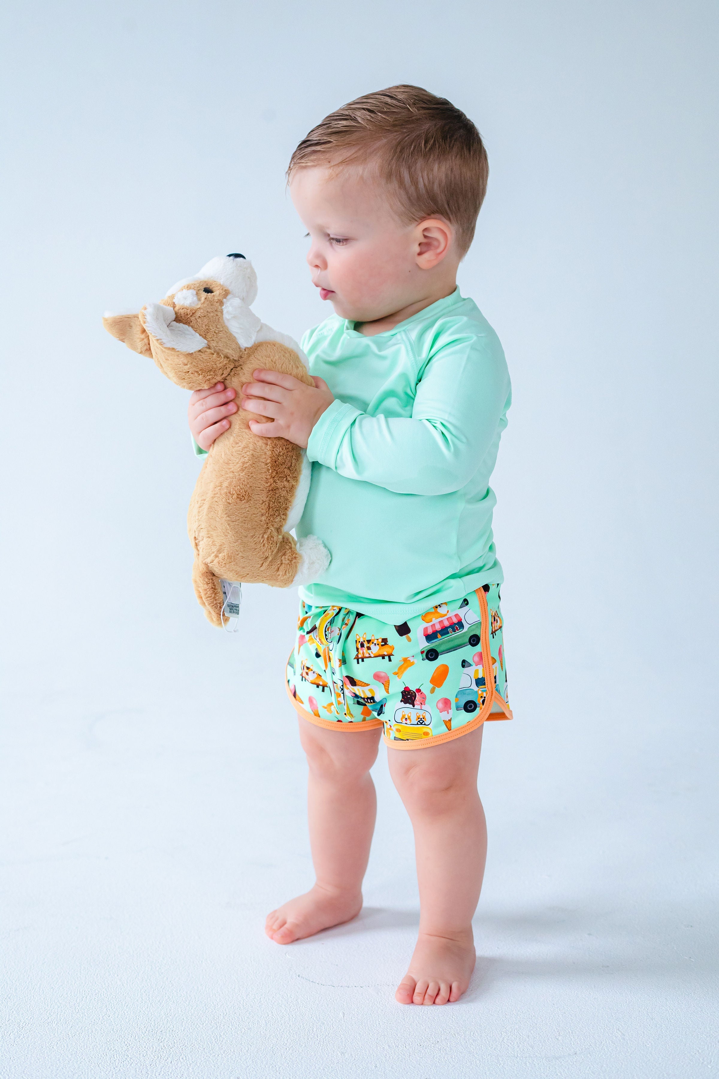 Meet your new favorite swimsuit! The Archie Swim Shorties are the go-to trunks your little one will reach for all swim season long. Designed for comfort, durability, and all-day fun, these shortie swim trunks are perfect for pool days, beach adventures, and backyard water play.