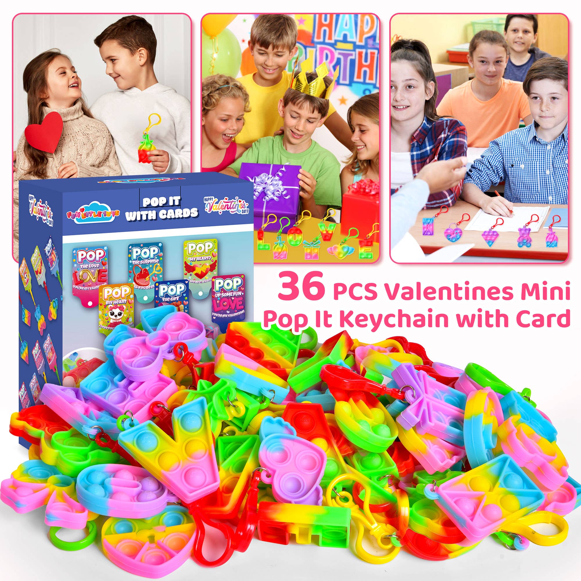 💝 36 Valentine’s cards with matching pop bubble keychains