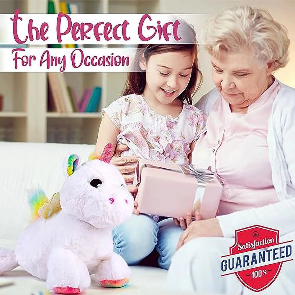 • Mama Unicorn Magic – Soft white plush with a fluffy rainbow tail, shimmering horn, and sparkly wings makes this large unicorn plush a total showstopper (and a cozy pillow buddy too!)