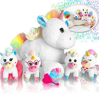 Bring on the sparkle and surprise! This 5-in-1 Unicorn Plush Bundle is packed with magic, love, and cuddles. Unzip the rainbow-filled belly of the soft, huggable mama unicorn to reveal four mini baby unicorns tucked inside—ready for playtime, bedtime, and everything in between.