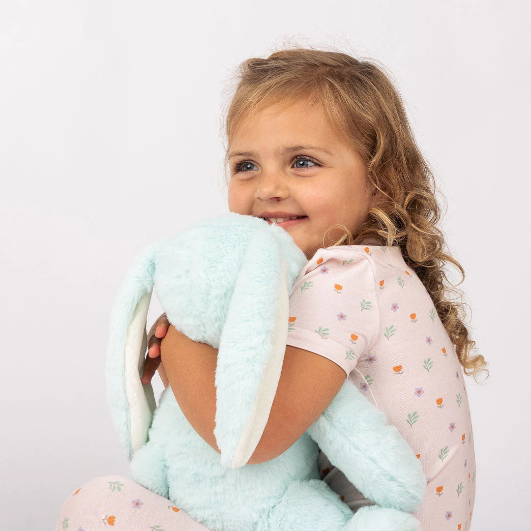 Our Blue Plush Stuffed Bunny is as soft as a cloud and made for endless hugs, cuddles, and comfort. Crafted from ultra-soft polyester fabric and filled with fluffy poly-fil, this sweet bunny is perfectly sized for little hands and gentle enough for playtime or bedtime snuggles.