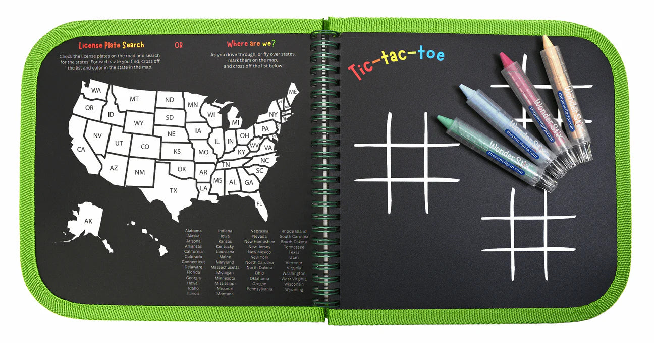 - 12 Reusable Pages: Comes with 11 game pages including favorites like "Tic-Tac-Toe," "I Spy," and "License Plate Search," plus a blank page for free drawing. Just wipe clean to start again!
