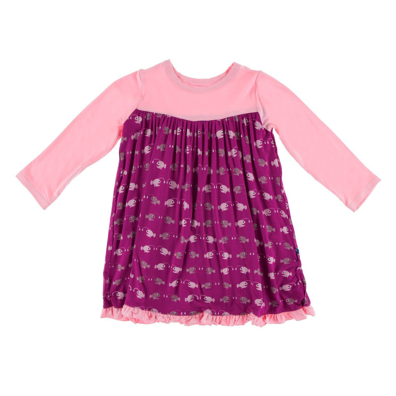 Classic Long Sleeve Swing Dress: Orchid Angler Fish