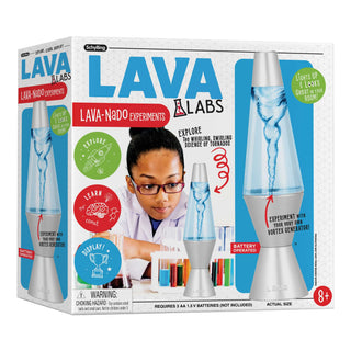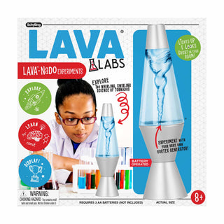 With the Lava-nado Experiments Kit, kids can recreate the power of a twisting tornado in miniature form! Explore the fascinating world of vortices and centripetal force while watching colorful swirls come to life inside a classic lava lamp-style container. The swirling motion, glowing lights, and dazzling glitter make this an eye-catching science experiment and a fun room accessory!