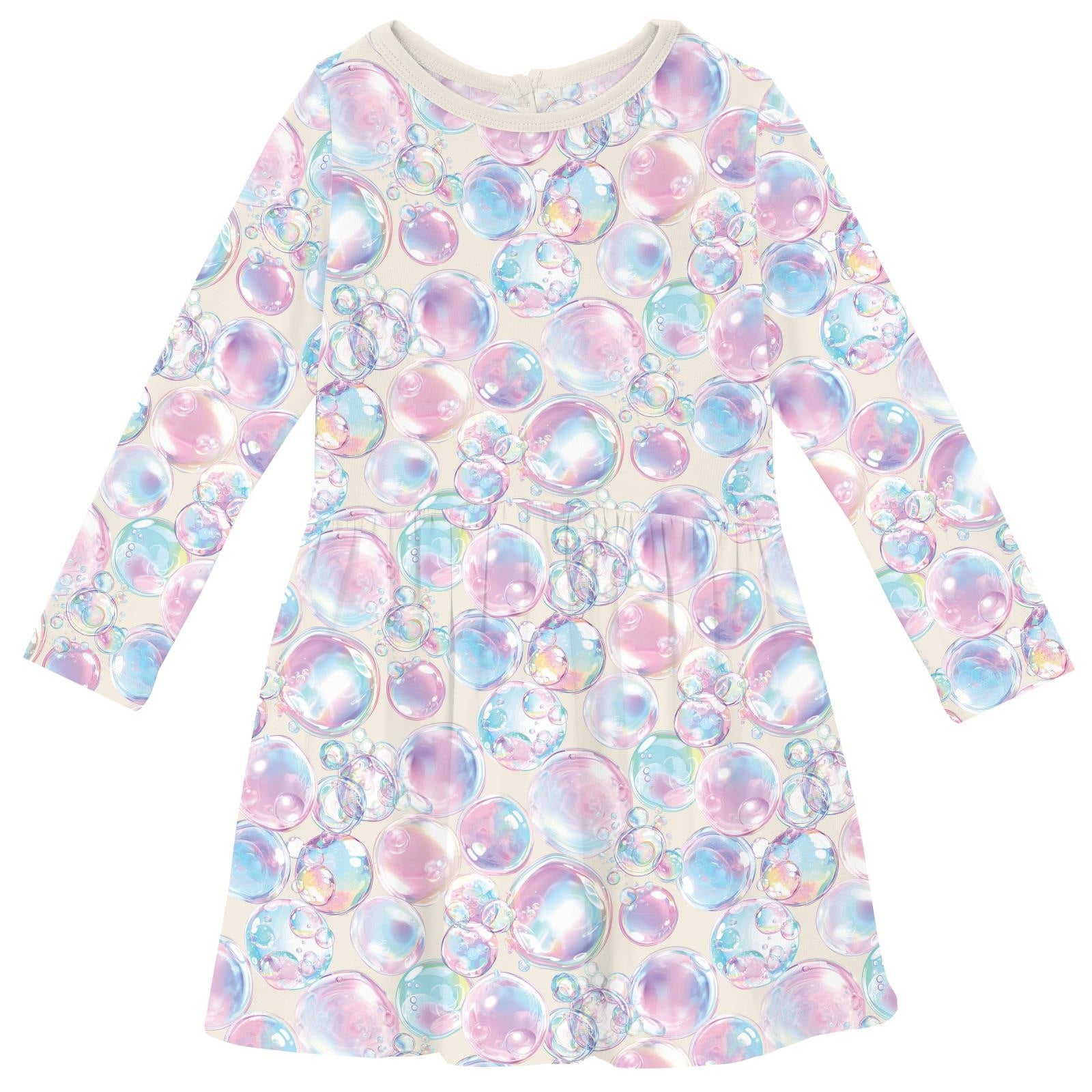 She'll be the hit of the party! Our darling long sleeve twirl dress has a fitted top and a flowy skirt below the waist so it swishes as plays. Now with pockets! Pair with tights or leggings for a stylish ensemble.