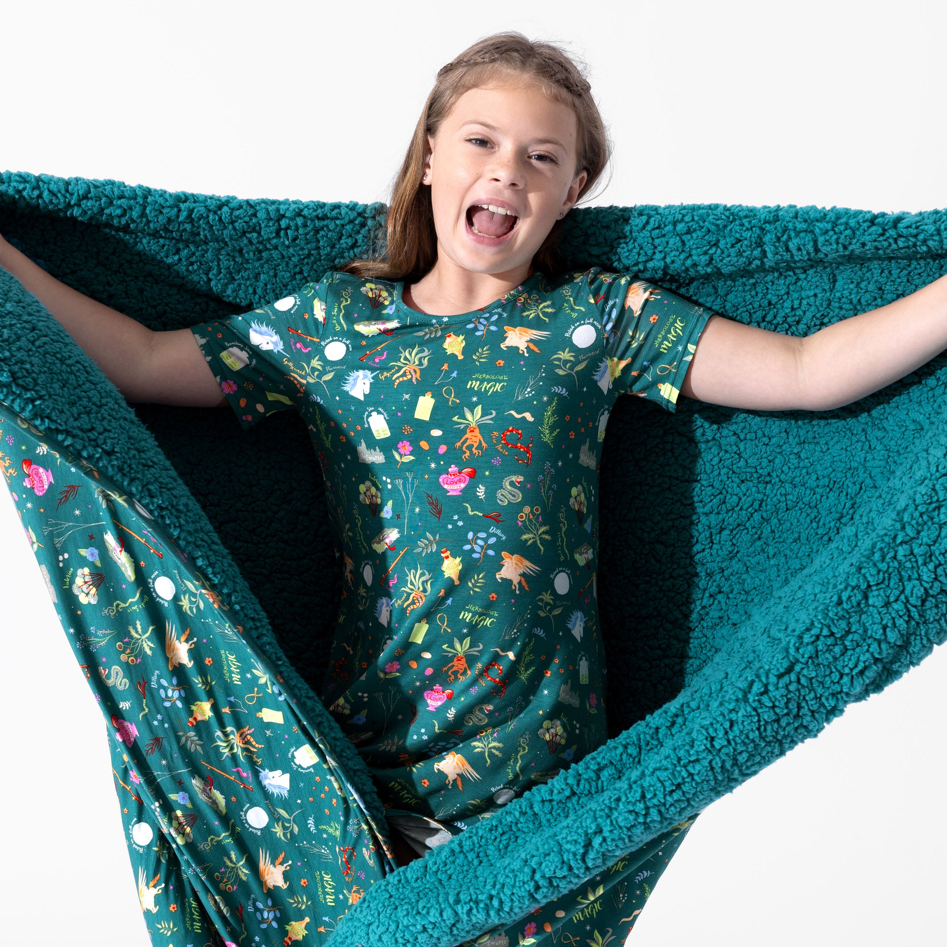 Brewing up sweet dreams just got easier! Inspired by the magical world of herbology, this enchanting short sleeve and shorts pajama set features our Mandrakes, Potions & Herbs print—perfect for your little potion master in training.