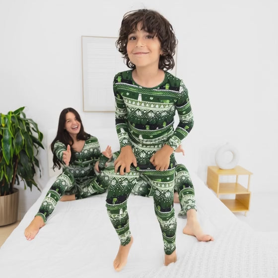 Crafted from ultra-soft, eco-friendly bamboo, these pajamas are breathable, stretchy, and gentle on even the most sensitive skin. The playful Minecraft-inspired holiday print brings a cheerful, pixel-perfect twist to your family’s Christmas morning, while the thermo-regulating fabric keeps everyone cozy from bedtime to brunch.