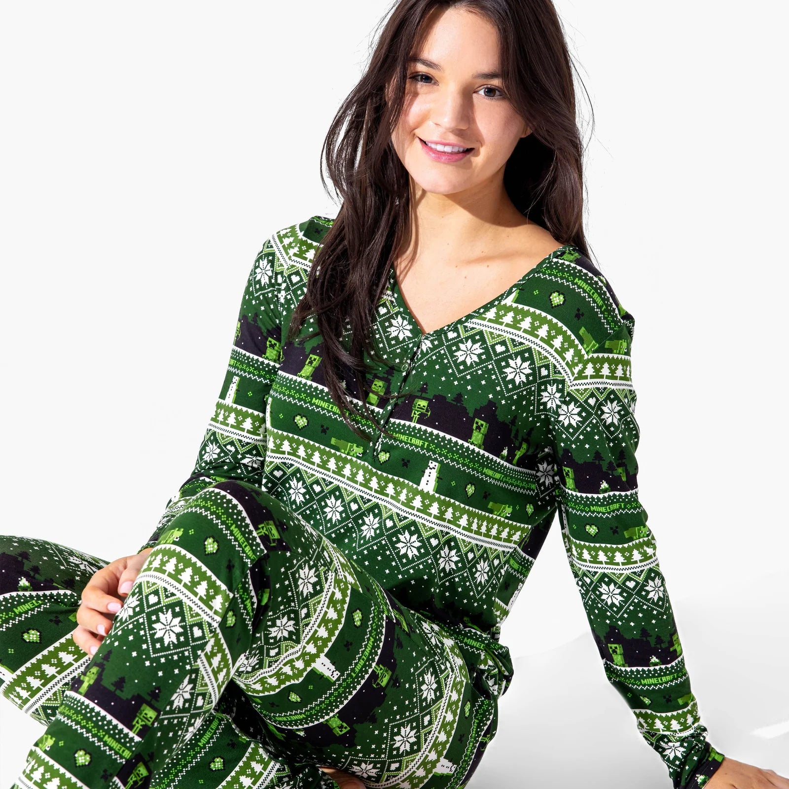 Minecraft Christmas Bamboo Women’s Pajama Set 🎄💚⛏️