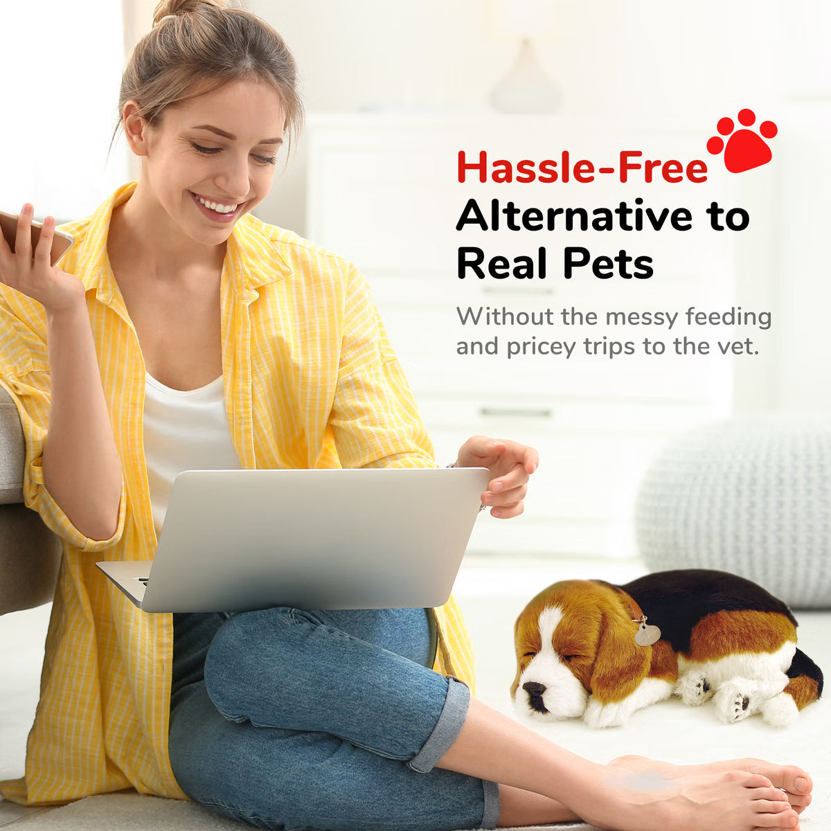Our Beagle Breathing Pet is the ultimate feel-good companion — compact, cuddly, and always ready for a nap (no leash required!). Known for being merry, curious, and full of heart, this little pup brings a calming presence with a sweet, lifelike snore that kids and grown-ups alike adore.
