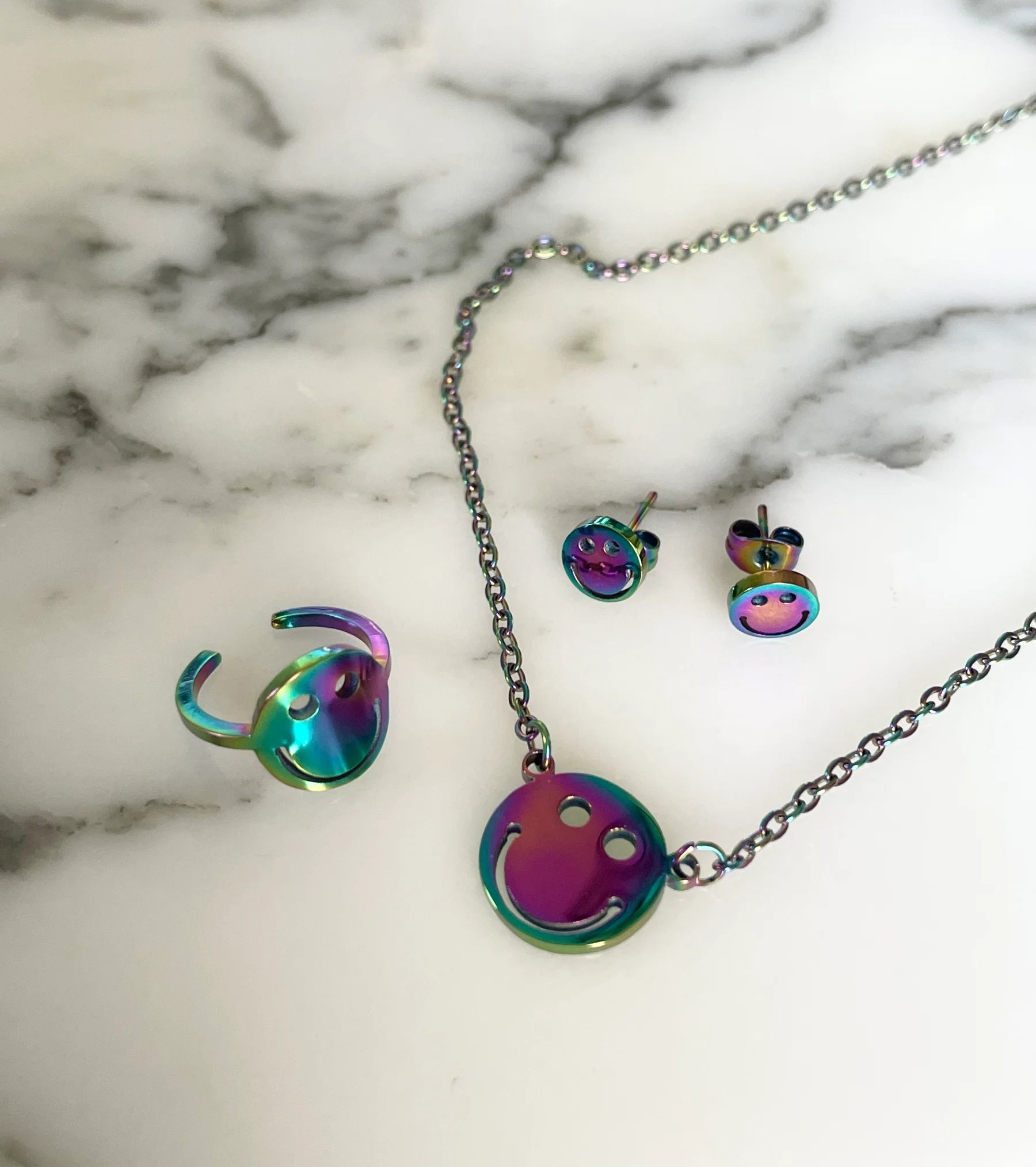 🌈 Jack and Jewelz Rainbow Stainless Steel Smiley Earrings 🌈